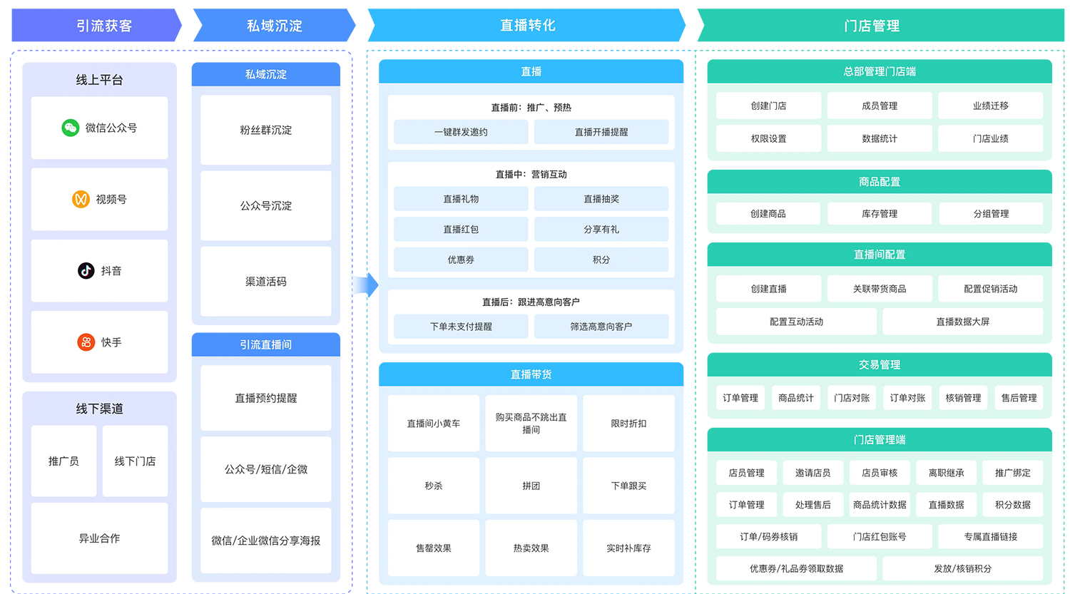 直播间实时带货,客户在线下单,客户就近到店提货,享受会员服务。